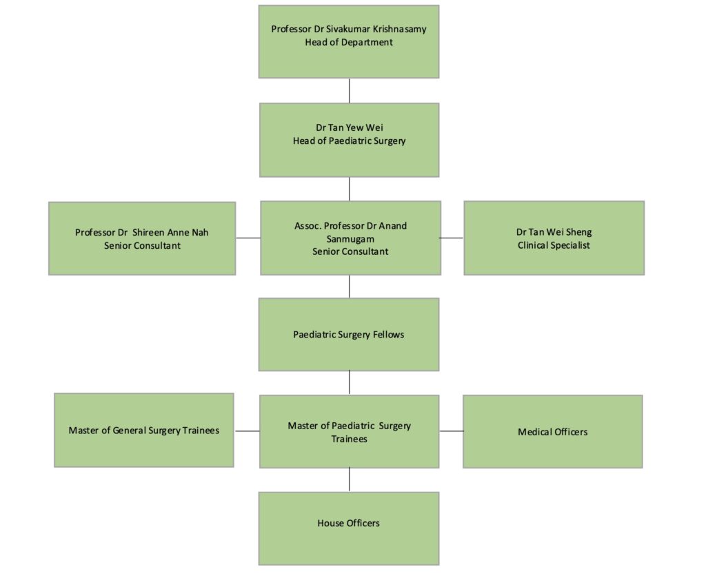 The Division of Paediatric Surgery in University of Malaya was established in 1995 under the headship of Professor TM Ramanujam. We started with 18 inpatient beds and a section of the ward that catered specifically to the care of newborns requiring surgery. We were the first paediatric surgical service in the country to provide minimally invasive surgery in children in the country. We were also the first institution to provide a structured postgraduate training programme in the country with the introduction of the Master of Paediatric Surgery programme in 2005.
